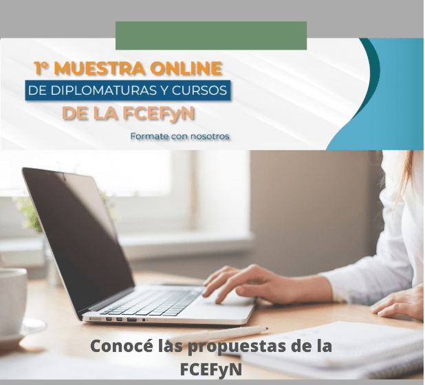 La 1º Muestra online de Diplomaturas y Cursos FCEFyN es una actividad de promoción de ofertas de formación extracurricular organizada y coordinada por el Área de Capacitación y Formación Contínua de la Secretaría de Extensión en conjunto con la Secretaría de Graduados de la FCEFyN-UNC.