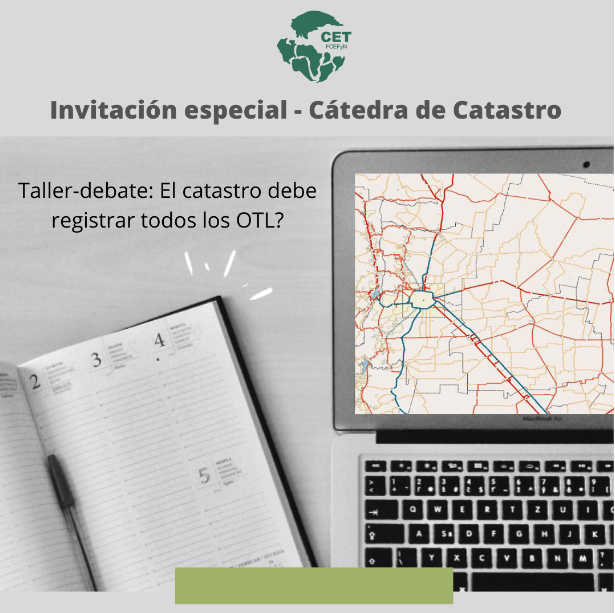 La cátedra de Catastro de la Escuela de Agrimensura de la FCEFyN (UNC) los invita al taller-debate: «El catastro debe registrar todos los OTL? O fortalecer su vinculación -vía la IDE- con los organismos especializados respectivos?»,